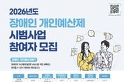 [경기뉴스원/경기뉴스1] | 시흥시는 2월 2일부터 13일까지 ‘2026년 장애인 개인 예산제 시범사업’ 참여자를 모집한다. 장애인 개인 예산제는 장애인이 자신에게 필요한 서비스를 직접 선택하고 관리할 수 있게 지원하는 제도다. 참여자는 자신의 장애인 바우처 서비스 급여의 일부(최대 20%)를 개인 예산으로 전환해 이용계획에 따라 물품 구매ㆍ서비스 이용에 활용할 수 있다. 모집 대상은 신청일 기준 시흥시에 거주 중이고, 장애인 바우처 서비스 4종(▲장애인활동지원서비스 ▲발달장애인 주간 활동 서비스 ▲청소년 발달장애인 방과후활동 서비스 ▲발달재활서비스) 중 1개 이상의 서비스를 받고 있는 장애인이다. 참여자는 개인 예산제 시범사업 사무국인 한국장애인개발원 선정위원회의 심사를 거쳐 선발되며, 선정 결과는 2월 말 안내할 예정이다. 선정된 참여자는 3월부터 4월까지 복지 전문기관을 통해 개인 예산 이용계획을 수립하고, 5월부터 10월까지 6개월간 개인 예산을 활용하면 된다. 사업 참여를 원하는 사람은 2월 2일부터 13일까지 신분증을 지참해 주소지 관할 동 행정복지센터를 방문해서 신청하면 된