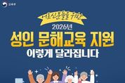[경기뉴스원/경기뉴스1] | 교육부와 국가평생교육진흥원(원장 직무대행 심한식)은 1월 19일, ‘2026년 성인 문해교육 지원사업 기본계획’을 발표한다. 성인 문해교육 지원사업은 교육 기회를 놓친 성인에게 읽기·쓰기·셈하기 등 기초 문해교육을 제공해 왔다. 최근에는 인공지능(AI)·디지털 대전환 등 사회 변화에 맞추어 디지털에 대한 이해·활용 등 디지털 문해교육과 건강·안전·금융·경제 등 일상생활 전반을 포괄하는 생활 문해교육도 함께 추진하고 있다. 이를 통해 지난해 약 10만 7천여 명에게 문해교육을 지원하고, 178개 기초 지자체와 413개 문해교육기관이 사업에 참여했다. 올해도 전국 문해교육기관을 대상으로 기초·디지털·생활 등 다양한 영역의 문해교육 프로그램 운영을 지원한다. 특히 인공지능(AI) 대전환 시대에 누구도 소외되지 않도록 인공지능(AI)·디지털 문해교육 지원을 강화할 예정이다. 2026년 사업의 주요 내용은 다음과 같다. 첫째, 찾아가는 인공지능(AI)·디지털 문해교육 “한글햇살버스” 운영 지역을 확대해(5개→9개 내외) 교육 접근성을 높인다. 신체·지리적 여건 등으로 기존 문해교육 참여가