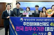 [경기뉴스원/경기뉴스1] | 거창군은 지난 16일 정부세종청사에서 행정안전부가 주최하는 2025년 대한민국 지방재정대상 시상식에서 주민참여예산제도 운영 4년 연속 전국 최우수기관으로 선정되어 장관 기관표창과 함께 재정 인센티브 5천만 원을 받았다. 행정안전부는 매년 전국 지방자치단체 243개를 대상으로 주민참여예산제도 성과평가를 통해 지자체의 건전한 재정 운용과 지방재정 민주성책임성투명성 평가해 광역·시· 군·구 별로 각 1개씩 총 4개 기관만을 최우수기관으로 선정하고 있다. 거창군은 2018년, 2021년 우수기관에 선정된 데 이어, 2022년부터 2025년까지 4년 연속 최우수기관으로 선정되는 성과를 거뒀으며, 이는 전국 군 단위 82개 지자체 가운데 최상위 수준의 운영 역량을 입증한 것이다. 특히 올해는 ‘공감과 성장-진화하는 거창형 주민참여예산’이라는 슬로건 아래, △찾아가는 주민 예산학교 미래세대(초 · 중 · 고 · 대학생) 확대 운영으로 미래세대의 참여 환경 조성 △‘모방과 경연’을 주제로 거창군만의 차별화된 제안사업 공모유형을 다양화해 창의적 행정문화 확산 △회의 진행보조자(퍼실리테이터)를