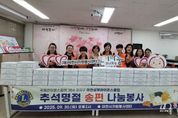 [경기뉴스원/경기뉴스1] | 이천시 자원봉사센터는 지난 9월 30일 이천설봉라이온스클럽과 함께 사랑의 송편 나눔 행사를 개최하며 ‘2025년 추석맞이 집중 자원봉사 주간’에 동참했다. 설봉라이온스클럽은 매년 추석 명절을 즈음하여 송편 나눔 활동을 진행하고 있으며 이번 나눔은 이천시재가노인복지센터에서 돌보고 있는 어르신 50가구에 송편이 담긴 따뜻한 꾸러미를 준비해 전달하며 명절의 온정을 나눴다. 유미영 회장은 “어르신들의 추석 명절이 행복하길 바라는 마음으로, 작지만 정성을 다해 송편을 준비하여 전달했다”라며 “앞으로도 우리 회원들은 지역사회와 함께하는 봉사 및 나눔 활동을 꾸준하게 이어갈 계획”이라고 밝혔다. 이미선 센터장은 “따뜻한 정을 나눠주신 이천설봉라이온스클럽 회원들께 감사드린다”라며 “시민이 공감하는 ‘온기나눔’을 통해 더 많은 이웃이 따뜻한 명절을 보내길 바란다”라고 전했다.
