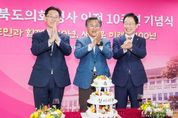 [경기뉴스원/경기뉴스1] | 경상북도의회는 4월 1일 제361회 임시회를 폐회하고, 청사 이전 10주년을 기념하여 '경상북도의회 청사 이전 10주년 기념식'을 개최했다. 이날 기념식에는 박성만 의장을 비롯해 도지사 권한대행인 황명석 행정부지사, 임종식 교육감, 도의원 및 관계 공무원 등 100여 명이 참석해 도청 이전 이후 지난 10년간의 성과를 되돌아보고, 앞으로의 발전 방향을 공유했다. 행사는 간소하게 진행됐으며, 기념 케이크 촛불 끄기 세레모니와 기념사 및 건배제의 순으로 이어졌다. 참석자들은 지난 10년간의 변화와 성장을 함께 돌아보고, 미래 100년을 향한 새로운 도약 의지를 다졌다. 박성만 의장은 “청사 이전은 경상북도의 새로운 도약을 위한 중요한 전환점이었다”며 “앞으로도 도민과 함께 지속 가능한 발전을 이루기 위해 책임 있는 의정활동을 이어가겠다”고 밝혔다. 경상북도의회는 이번 기념식을 계기로 도민과 함께한 성과를 바탕으로, 지역 발전과 도민 삶의 질 향상을 위한 의정활동을 더욱 강화해 나갈 계획이다.