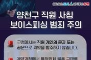 [경기뉴스원/경기뉴스1] | # 최근 서울 소재 A업체는 가스누설감지기 등을 남품해 달라는 요청을 받았다. 주문자는 양천구청 재무과 소속 진△△ 주무관이라고 자신을 소개하고 견적서와 함께 특정 B업체에서 대리납품하라고 요청했다. 수상함을 느낀 A업체가 재무과 진△△ 주무관을 찾아 문의하니 ‘납품을 요청한 사실이 없다’는 답이 돌아왔다. 양천구(구청장 이기재)는 최근 양천구청 직원을 사칭해 물품대금 선입금을 요구하는 사기 범죄가 급증함에 따라, 유사 피해가 발생하지 않도록 각별한 주의와 함께 선제적인 피해 예방에 나선다고 4일 밝혔다. 최근 사칭 사기범들이 조달청 나라장터와 서울시 계약마당 등에 게시된 관·내외 업체의 계약 이력을 악용해 실제 계약 발주를 가장한 뒤, 물품 대리구매를 명목으로 대금 선입금을 요구하는 사례가 잇따르고 있다. 특히, 실제 구청 직원의 소속과 성명을 사칭해 계약 발주의 진위 여부를 쉽게 판단하기 어렵게 만드는 등 범행 수법이 날로 정교해지고 있다. 한편, 구는 지난 1년간 공무원 사칭 사기 시도 사례 50여 건을 확인했다. 이 중 대부분은 업체가 사전에 의심해 구에 사실