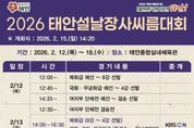 [경기뉴스원/경기뉴스1] | 태안군이 민족 대명절 설을 맞아 2월 12일부터 18일까지 태안종합실내체육관에서 ‘위더스제약 2026 태안 설날장사 씨름대회’를 개최한다. 대한씨름협회가 주최하고 태안군씨름협회가 주관하는 이번 대회는 32개 팀 291명의 선수가 참가해 모래판 위 최강자를 가린다. 군은 민족 전통 경기인 씨름을 알리고 군민과 관광객이 함께 즐기는 축제의 장을 마련할 계획이다. 대회는 12일 예선을 시작으로 13일 여자부 개인전 및 단체전 결정전이 열린다. 14일 소백장사, 15일 개회식 및 태백장사, 16일 금강장사, 17일(설날) 한라장사 결정전이 이어지며 대회 마지막 날인 18일 백두장사 결정전이 펼쳐진다. 박진감 넘치는 경기는 KBS 1TV와 KBS N SPORTS를 통해 전국에 생중계된다. 군은 많은 주민이 씨름의 묘미를 즐길 수 있도록 가로등 현수기와 전광판 등을 활용해 대회 일정을 대대적으로 홍보한다. 방문객 편의를 위해 대회 기간인 12일부터 18일까지 7일간 셔틀버스가 운행된다. 노선은 태안공영버스터미널을 출발해 다이소 앞, 우체국사거리, 이석민 피자 등을 거쳐 종합실내체육