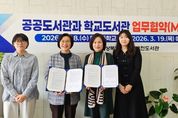[경기뉴스원/경기뉴스1] | 경상북도교육청 예천도서관은 18일과 19일 학교도서관 연계사업의 일환으로 대창중학교, 예천초등학교 2개교와 학교도서관 활성화를 위한 업무협약(MOU)을 체결했다. 이번 협약을 통해 공공도서관과 학교도서관 간 협력 체계를 구축하고 다양한 독서문화 프로그램을 지원함으로써 학생들의 독서 활동 영역을 넓히고, 책 읽는 문화를 확산하는 데 힘쓸 계획이다. 또한 공공도서관과 학교도서관이 상호 소통하며 건전한 독서 환경을 조성하기 위해 4월부터 연계사업을 본격 추진한다. 예천도서관은 이번 협약을 바탕으로 4월 30일 대창중학교 1학년 학생 29명을 대상으로 청소년 진로 탐색을 주제로 한 MBTI 특강‘김은정 작가와의 만남’을 운영한다. 이어 6월 26일에는 예천초등학교에 전교생 350여 명이 함께 즐길 수 있는 창작 동화 음악회 공연을 지원할 예정이다. 김미연 예천도서관장은 “공공도서관과 학교도서관 업무협약을 통해 교원의 업무 부담을 줄이고 학생들에게 다양한 독서문화 경험을 제공할 수 있을 것으로 기대한다”며 “앞으로도 학교도서관 활성화를 위한 다양한 프로그램을 지속적으로 지원하겠다”고 말했