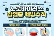 [경기뉴스원/경기뉴스1] | 전북특별자치도는 15일 겨울철 노로바이러스 감염증이 증가함에 따라 개인 위생수칙을 철저히 지켜줄 것을 당부했다. 질병관리청 표본감시 결과에 따르면 최근 4주간 병원급 의료기관에서 확인된 노로바이러스 감염 환자는 45주 70명에서 46주 94명, 47주 101명, 48주 127명으로 지속적인 증가세를 보이며 주의가 필요한 상황이다. 노로바이러스는 영하 20도의 낮은 온도에서도 생존하는 등 저항력이 매우 강해 매년 11월부터 이듬해 3월까지 집중적으로 발생한다. 일상 환경에서도 사흘간 생존이 가능하고 적은 양의 바이러스로도 감염을 일으킬 만큼 전염력이 높다. 주된 감염경로는 오염된 지하수나 어패류 섭취이며, 환자 접촉이나 분비물을 통한 사람 간 전파도 쉽게 발생한다. 감염 시 12~48시간 내 구토와 설사가 나타나며 복통과 발열, 오한을 동반하는 경우도 있다. 전북도는 노로바이러스가 높은 전염력을 지니고 있지만, 올바른 손씻기와 안전한 식재료 조리 등 기본 수칙만으로도 충분히 예방할 수 있다고 강조했다. 비누를 사용해 30초 이상 손을 씻고 식재료는 85℃ 이상에서 1분 이