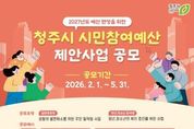 [경기뉴스원/경기뉴스1] | 청주시는 2027년 예산편성을 위한 시민참여예산 제안사업 공모를 오는 5월 31일까지 접수한다고 4일 밝혔다. 이번 공모는 시민이 직접 지역 발전을 위한 다양한 아이디어를 제안하고, 이를 예산 편성 과정에 반영함으로써 시민 삶의 질 향상과 청주시 발전에 기여하기 위해 마련됐다. 제안 대상 사업은 △생활 주변 불편 해소 등 주민생활과 직결되는 소규모 사업 △지역 주민의 복지 증진과 삶의 질 향상을 위한 사업이다. 다만 △법령 및 예산편성 관련 기준을 위반하는 사업 △특정 개인·단체의 이익을 위한 사업 △타 기관 소관 사업 △기타 공익을 저해하는 사업 등은 공모 대상에서 제외된다. 청주시민은 물론 지역 내 사업체 또는 기관에 종사하는 사람이라면 누구나 참여할 수 있다. 응모는 청주시청 누리집(시민참여-시민참여예산-예산사업 제안)을 통해 온라인으로 참여하거나, 읍·면·동 행정복지센터 방문 및 우편을 통해 제출하면 된다. 시는 접수한 제안사업을 바탕으로 담당 사업부서의 실행 가능 여부와 행정절차 등을 검토한 뒤 시민참여예산위원회 심의와 시민 의견 수렴 과정을 거쳐