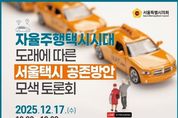 [경기뉴스원/경기뉴스1] | 서울특별시의회 교통위원회(위원장 이병윤, 국민의힘, 동대문1)는 2025년 12월 17일 10시, 서울시의회 의원회관 제2대회의실에서 “자율주행택시시대 도래에 따른 서울택시 공존방안 모색 토론회”라는 주제로 토론회를 개최했다. 서울시의회가 주최하고 교통위원회가 주관한 이번 토론회는 이병윤 교통위원장 개회사로 시작됐으며 김동완 서울특별시택시운송사업조합 이사장의 축사와 함께 문성호 서울시 의원이 사회를 맡았다. 자율주행택시에 대한 주제 발제는 한국개발연구원(KDI) 김동영 전문연구원이 진행했으며, 이어지는 토론에서는 이경숙 교통위원회 부위원장이 좌장을 맡아 논의를 이끌었다. 토론자로는 김거중 한국교통연구원 부연구위원, 장정아 아주대학교 연구교수, 이우영 HC택시 대표이사, 박준환 국회입법조사처 팀장, 정준호 서울시 의원, 손형권 택시정책과장이 참여하여 토론이 진행됐다. 이 날 토론회에서는 자율주행 시대의 도래에 발맞춰 택시 산업의 지속 가능한 발전을 위한 준비가 필요하다는 데에 공감대를 형성했다. 아울러 기존 택시 시장과 첨단기술이 상생할 수 있는 자율주행 서비스 도입 방안을 모색하고,