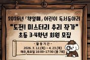 [경기뉴스원/경기뉴스1] | 인천광역시교육청주안도서관은 오는 23일부터 초등 3~4학년 학생을 대상으로 ‘책열매’ 독서동아리 회원을 모집한다. ‘도전! 미스터리 추리 작가’를 주제로 한 이번 프로그램은 어린이가 독서지도 전문 강사의 지도 아래 꾸준한 독서 습관을 기르고, 또래 친구들과 책으로 소통하는 경험을 쌓을 수 있도록 마련했다. 프로그램은 매주 미스터리 주제의 다양한 책을 읽고 수수께끼 만들기, 탐정일지 쓰기, 같은 시작 다른 결론, 뒷이야기 쓰기 등의 활동을 하며, 학생들이 직접 추리 동화를 창작하는 과정으로 3월 12일부터 4월 23일까지 운영한다. 모집은 2월 23일 오전 10시부터 주안도서관 누리집에서 선착순 진행하며, 자세한 내용은 주안도서관 누리집을 확인하거나 어린이자료실로 문의하면 된다.