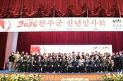 [경기뉴스원/경기뉴스1] | 2026년 완주군 신년인사회가 12일 완주문화체육센터에서 완주청년회의소(JCI) 주관으로 열렸다. 이날 행사에는 유희태 완주군수 내외, 완주군의회 유의식 의장과 완주군의회 의원, 유관 기관·단체장, 이장, 부녀회장 등 각계 인사 200여 명이 참석했다. 행사는 식전공연을 시작으로 국민의례, 신년사, 축사, 덕담 및 건배 제의, 기념촬영 순으로 진행됐으며, 새해를 맞아 완주군의 도약과 결실을 다짐했다. 유충열 완주청년회의소 회장은 “완주청년회의소는 청년들의 열정과 아이디어를 중심으로 지역사회의 발전과 변화를 위해 앞장서겠다”며 “청년들의 목소리를 정책과 사업에 반영하고, 미래 세대가 더 나은 환경에서 꿈을 펼칠 수 있도록 지원을 강화하겠다”고 말했다. 덧붙여 “앞으로도 완주군과의 협력을 통해 상생과 소통의 지역 발전을 이루겠다”고 밝혔다. 유희태 완주군수는 신년사를 통해 “유지경성(有志竟成), 모두의 노력들이 모여 큰 성과를 이루는 해가 되기를 바란다”며 “2026년은 완주군이 그간의 노력의 결실을 맺고 미래행복도시로 도약하는 해로 만들겠다”고 다짐했다.