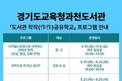 [경기뉴스원/경기뉴스1] | 경기도교육청과천도서관이 학생들의 자기주도 학습 역량과 창의적 사고력 함양을 위해 ‘도서관 작작(作作) 공유학교’를 운영한다. 오는 5월부터 10월까지 운영되는 ‘도서관 작작(作作) 공유학교’는 독서 기반의 체험과 창작 활동을 결합한 과천도서관의 특화 공유학교 프로그램이다. 프로그램은 초등학생(4~6학년)과 청소년을 대상으로 운영되며 디지털 콘텐츠 창작, 과학·진로 탐색, 인공지능 활용, 경제·창업 체험 등 다양한 분야의 융합형 교육과정으로 구성했다. 청소년 대상 과정인 디지털 드로잉을 활용한 콘텐츠 창작 프로그램은 초급·중급·심화 단계로 운영해 아이디어를 시각적으로 표현하고 스토리텔링 역량을 확장할 수 있도록 했다. 초등학생 대상 프로그램으로는 과학 탐구와 독서를 연계한 진로 탐색 활동, 인공지능을 활용한 동화책 제작, 경제 개념을 체험 중심으로 익히는 프로그램, 아이디어를 실제 결과물로 구현해보는 창업 활동, 이모티콘 제작을 통한 콘텐츠 창작 활동 등 다양한 체험 중심 과정이 운영된다. 각 프로그램은 소규모 참여형 수업으로 운영되며 학생의 수준과 흥미를 고
