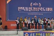 [경기뉴스원/경기뉴스1] | 경상북도는 22일 영주시 풍기인삼문화팝업공원에서 민족통일협의회 경상북도 주관으로 ‘2025 민족통일 경상북도대회’를 개최했다. 행사에는 김진현 경북도 안전행정실장, 배진석 도의회 부의장, 유정근 영주시장권한대행, 도재영 민족통일 중앙협의회 의장, 박종호 민족통일경상북도협의회장, 김추길 민족통일 전남회장을 비롯한 시군지회 회원 700여 명과 풍기인삼축제현장을 찾은 많은 관광객과 어울려 뜻깊은 행사를 했다. 행사는 식전 공연을 시작으로, 한반도 평화를 위한 결의문을 회원들과 함께 낭독하고, 이어서 지역사회 및 통일 안보에 이바지한 우수 유공자들에게 도지사 표창을 비롯한 다양한 상패가 수여되며 행사 분위기를 한층 고조시켰다. 특히, 행사 마지막에는 참가자 전원이 함께 ‘우리의 소원은 통일’을 합창하며, 평화통일의 필요성과 중요성을 다시 한번 되새기는 뜻깊은 시간으로 마무리됐다. 박종호 민족통일 경상북도협의회장은 대회사를 통해 “확고한 국가관과 투철한 사명감을 바탕으로 민족의 염원인 조국의 평화통일을 실현할 수 있도록 도민들의 적극적인 참여와 성원”을 당부했다. 김