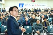 [경기뉴스원/경기뉴스1] | 광주광역시는 10일 강진군에서 ‘광주·전남 통합 강진군 상생토크’를 열고, 통합 이후 강진 발전 방향과 상생 협력 방안에 대해 군민들과 의견을 나눴다. 상생토크는 광주전남 통합에 대해 전남 시군민들과 직접 소통하기 위해 마련된 자리로, 이날 행사에는 강기정 광주시장, 강진원 강진군수, 군민 등 200여명이 참석했다. 강기정 광주시장은 이달 초 국회를 통과한 통합특별법의 핵심 내용과 정부 재정 지원 등을 설명했다. 또 광주전남 통합으로 하나의 생활·경제권으로 연결되면 관광과 문화, 농식품 등 다양한 분야에서 협력 가능성이 더욱 커질 것이라는 점을 공감했다. 강진 발전 방향으로 ▲광주-강진 고속도로 등 30분 생활권 확충 ▲스마트농업으로 더 잘사는 농촌 ▲인 광주, 인 강진 ‘GG프로젝트’ 관광산업 육성 등 비전을 제시했다. 현장에서는 강진이 보유한 관광자원과 농촌체험 프로그램을 광주의 관광 수요와 연계하면 체류형 관광과 지역경제 활성화에 도움이 될 것이라는 의견이 이어졌다. 특히 최근 전국적으로 주목받고 있는 강진 ‘반값여행’ 확산 방안도 논의했다. 참석자들은