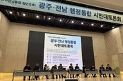[경기뉴스원/경기뉴스1] | 가칭 ‘광주전남통합추진 시민포럼(준)’과 민형배·신정훈·이개호·주철현 국회의원, 이병훈 호남발전특별위원장이 공동 주최한 ‘광주·전남 행정통합 시민대토론회’가 11일 오전 전남대 광주캠퍼스 컨벤션홀에서 지역민의 높은 관심 속에 성황리에 개최됐다. 이번 토론회는 지난 9일 이재명 대통령이 광주·전남 지역구 국회의원들과 시도지사를 청와대로 초청해 통합 방안을 논의한 직후 처음 열린 시민공론장이라는 점에서 큰 주목을 받았다. 기조발언에 나선 이정록 전남대 명예교수(전 대한지리학회장)는 “수도권 일극 체제에 맞서 광주와 전남이 생존하기 위해서는 통합을 통한 초광역 경제권 구축이 필수적”이라고 강조했다. 이어 김재철 광주전남연구원 선임연구위원이 좌장을 맡아 진행된 열린토론에서는 학계와 시민사회를 아우르는 11명의 전문가 패널이 참여해 열띤 논의를 펼쳤다. 이재창 전 나주대 교수는 행정구역 분리로 인한 막대한 손실을 지적하며 시민사회의 역할을 주문했다. 이 교수는 “무안공항 활성화 실패나 최근 AI 데이터센터 유치전에서 보듯, 한 뿌리였던 광주와 전남이 나뉘어 발생한 소모적 경쟁과